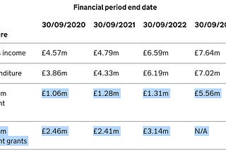 I go through 20 charities - accounting for £222,815,550 (!) in taxpayer funding