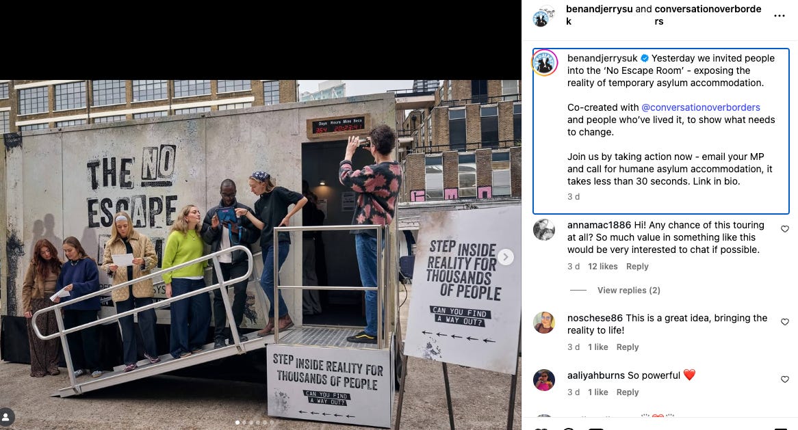 Ben & Jerry's holds exhibition to showcase the horrors of temporary asylum accommodation