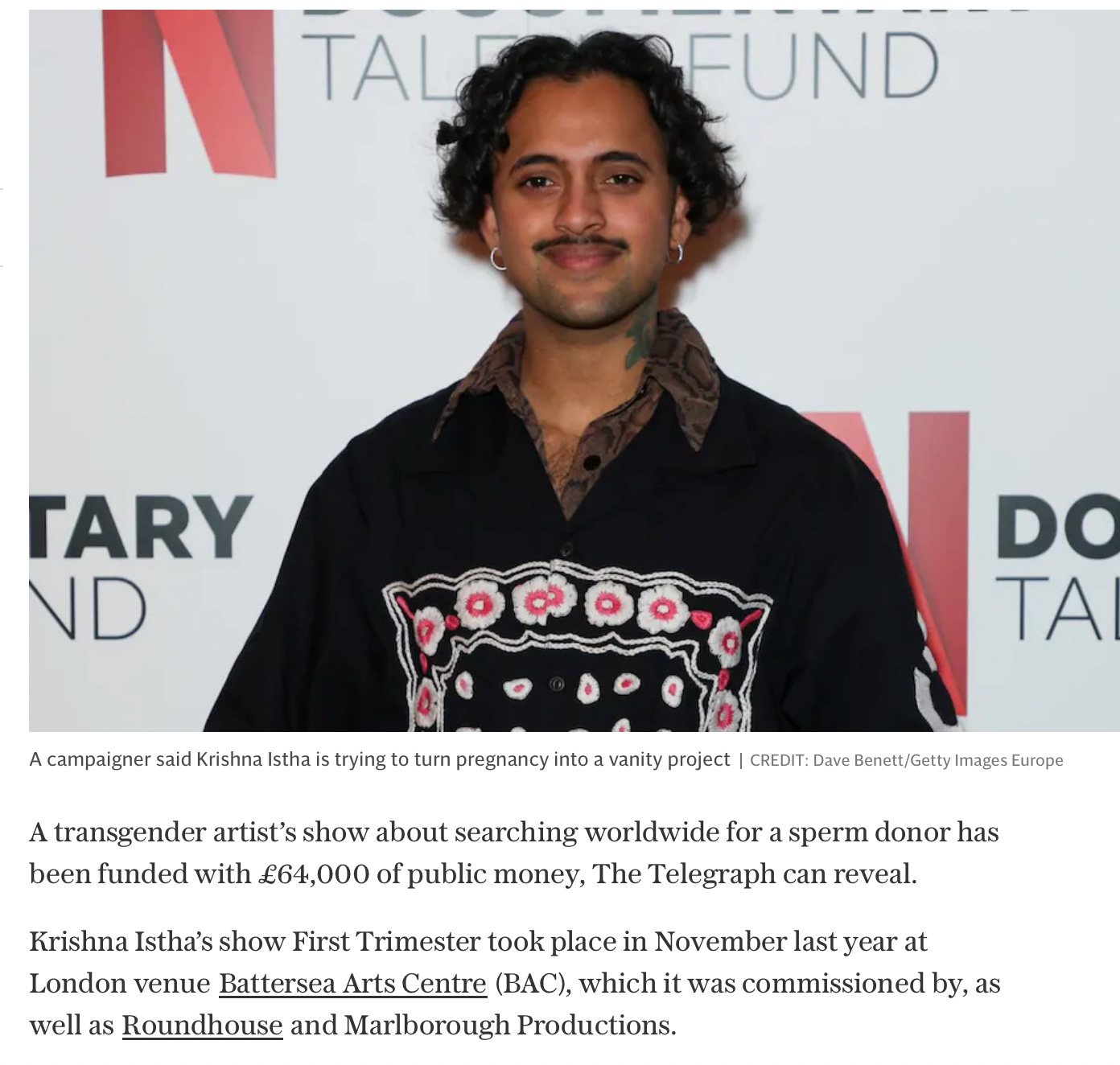 You get the gist. It’s the usual “the arts/ NHS/ public sector on their/its knees” line we hear from the Wokies. Everything’s to blame for state bodies having their financial knickers in a twist - Tory austerity/ lack of funding/ Covid/ the Australian Olympic breakdancer/ ANYTHING other than, I dunno, whether people want to see Blood Show. And that’s before we get to some of BAC’s other productions…