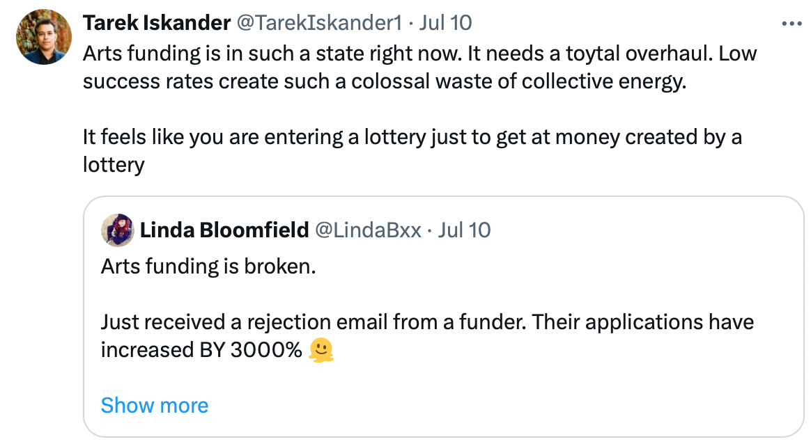 But yeah, arts funding, ey…
