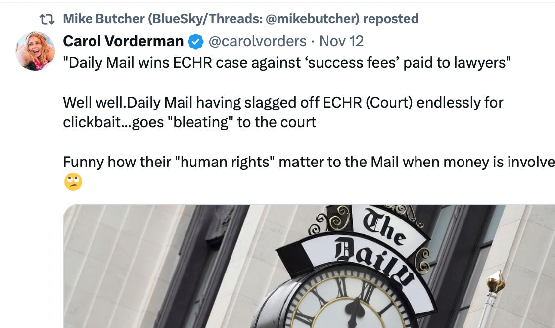 It’s run by Mike Butcher, who regularly promotes Vorderman content on his feed: