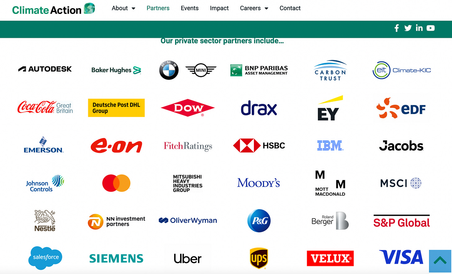Unsurprisingly the UN is partners with Climate Action. Here’s the full breakdown of its private sector partners…