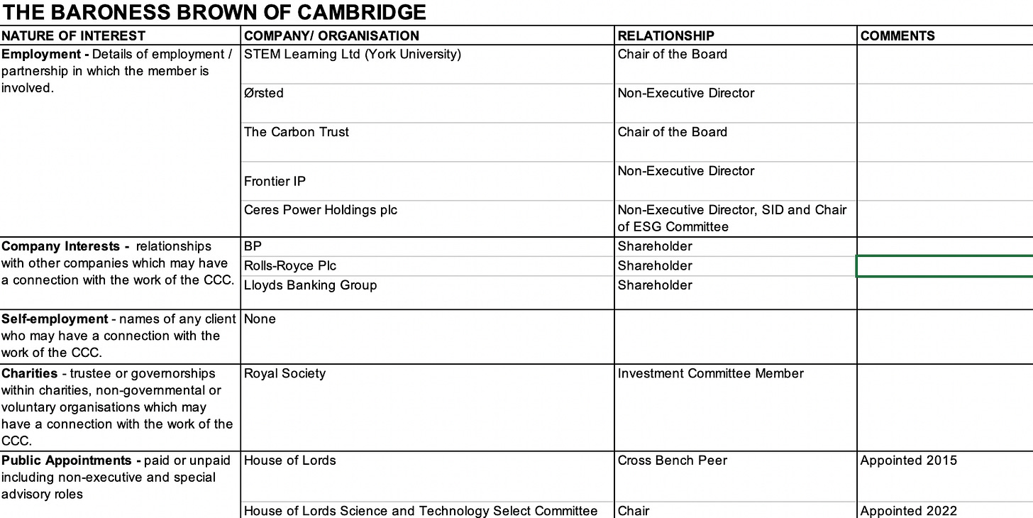 Interestingly, Baroness Brown of Cambridge, a member of the Climate Change Committee (which advises on the Government’s Net Zero strategy) is Chair of the Board at The Carbon Trust. It seems to come up a lot (as you’ll soon see).