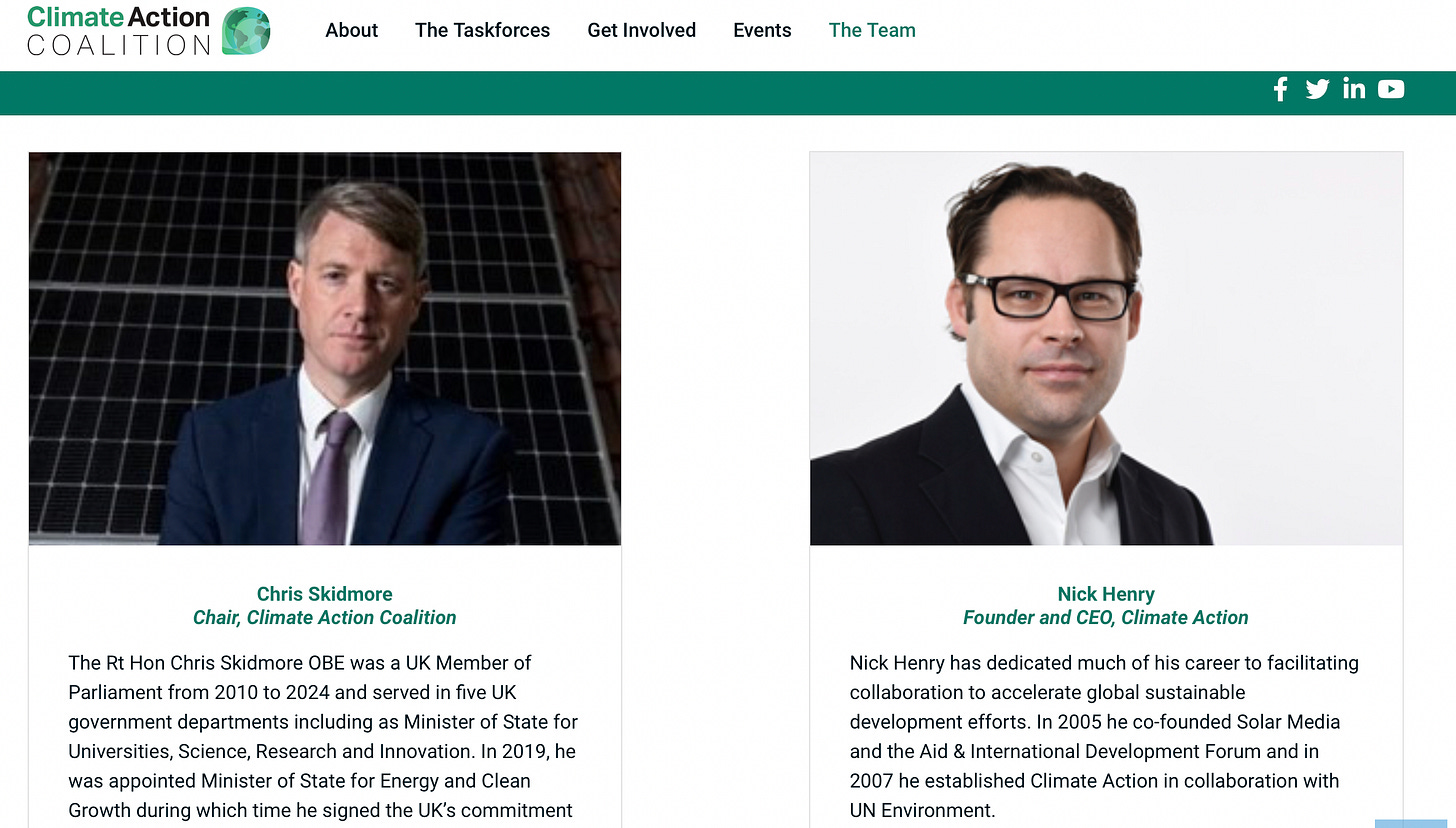 Its founder and CEO Nick Henry established Climate Action in 2007 “in collaboration with UN Environment”, and together he and Skidmore have formed the “Climate Action Coalition” with US Secretary John Kerry: