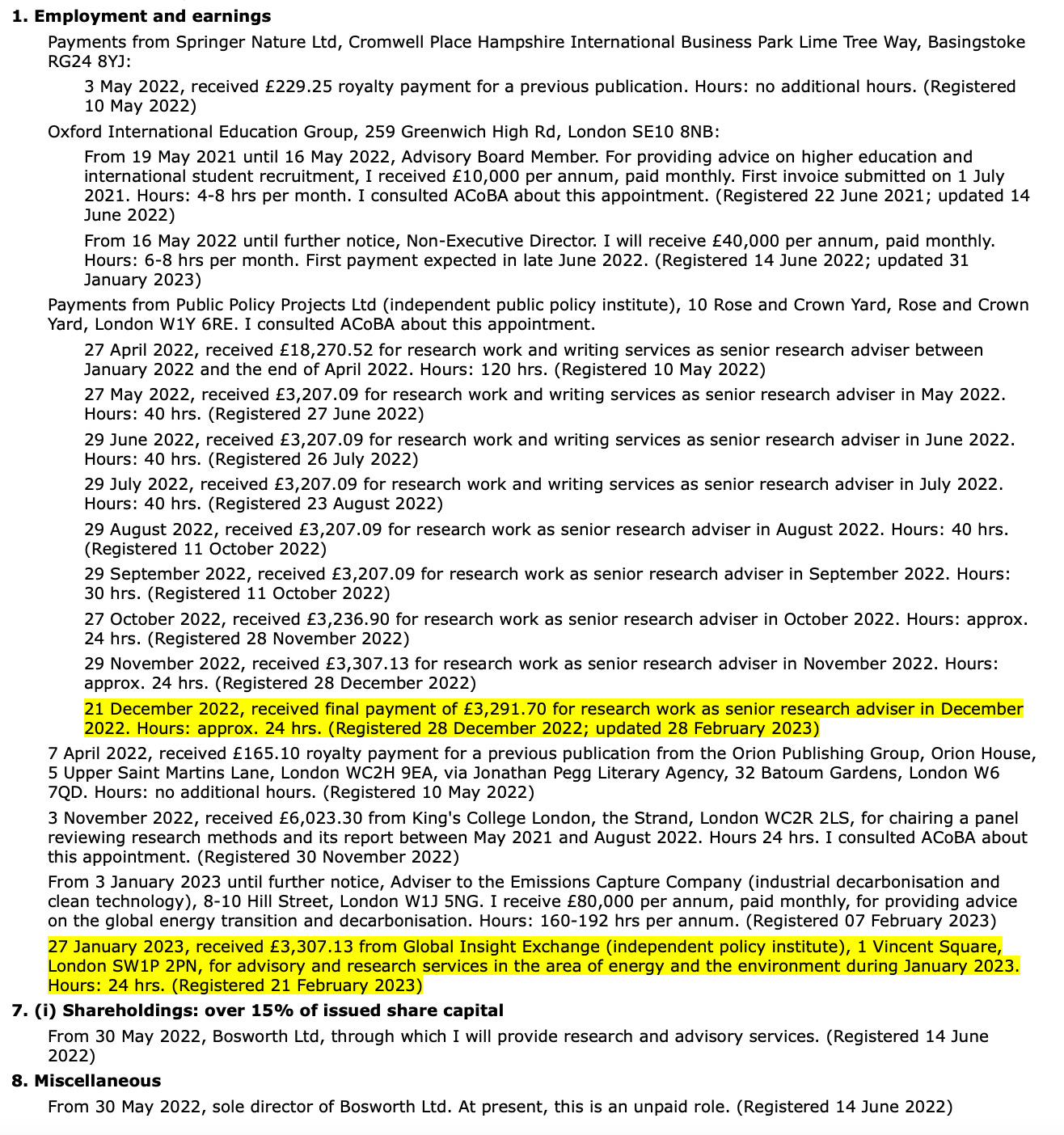 To be fair to Skidmore, he did seem to have rather a lot on his plate at the time - so maybe we should be sympathetic. It’s not easy being a public servant when you have THIS amount of registered interests (as of 6 March 2023):