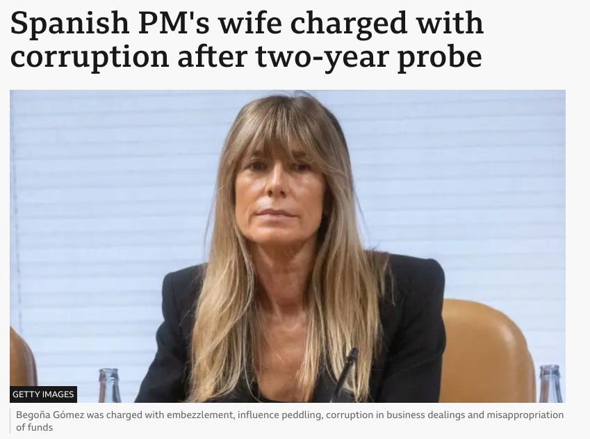 This is the same Sánchez whose wife was recently charged with corruption after a two-year investigation.