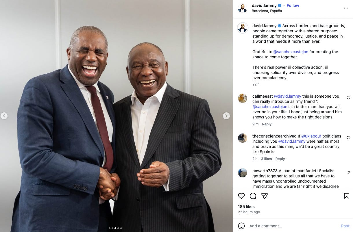 David Lammy has been very quiet indeed about his attendance at the Global Progressive Mobilisation summit in Spain.