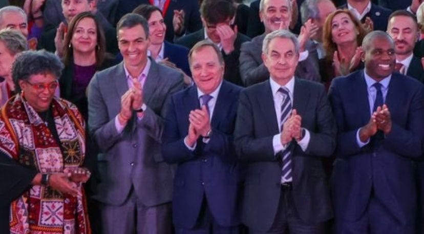 Soros Junior posted a photo of himself with Pedro Sánchez, the Prime Minister of Spain and President of Socialist International, whose wife was recently charged with corruption after a two-year criminal investigation. Lammy was also photographed embracing Sánchez; how lovely!