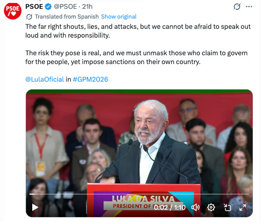 Sánchez spearheaded the conference and had a lot to say about “the far right”. In one speech he warned: