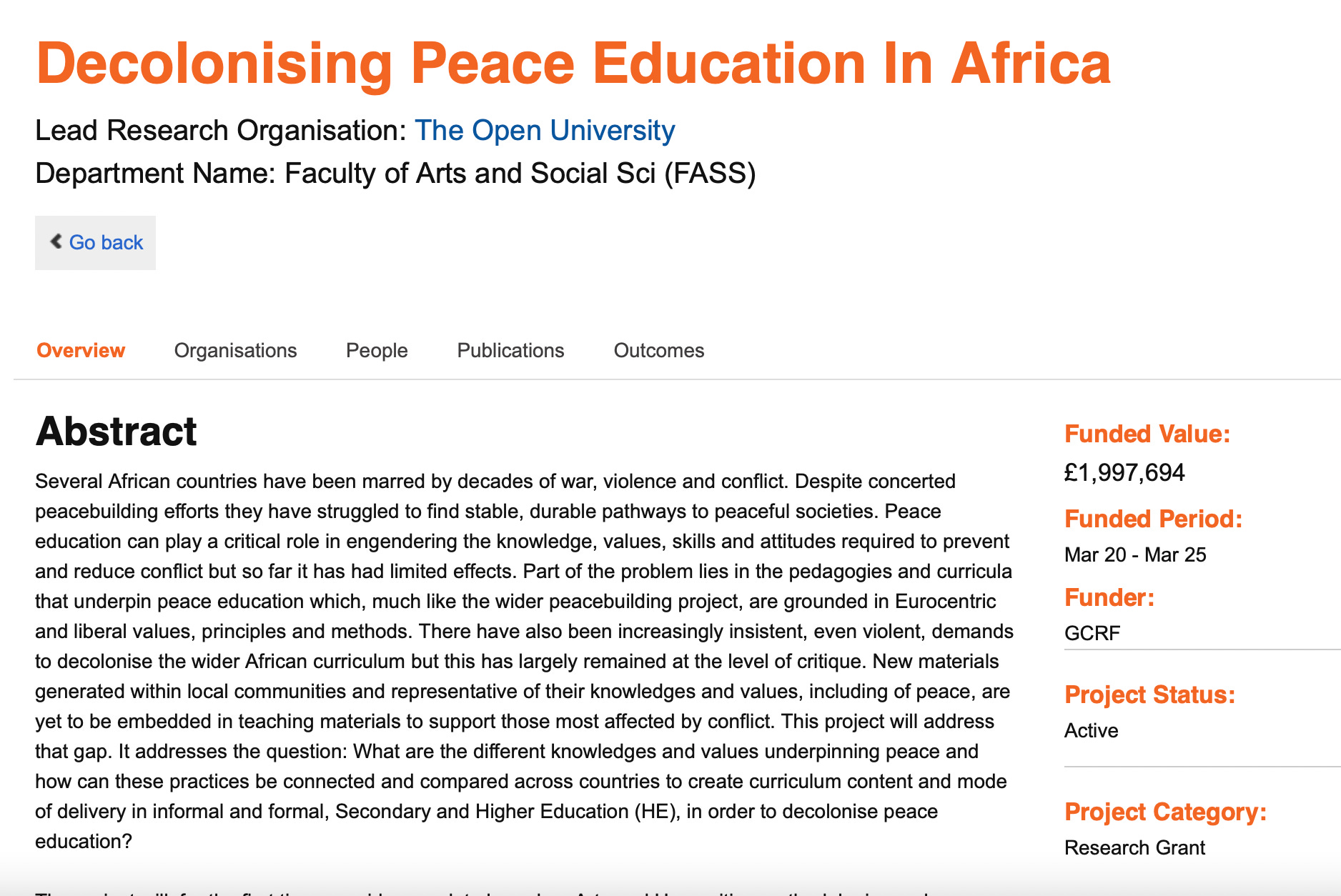 “The project will deliver at least 9 journal articles, 4 co-edited special issues of journals and an interdisciplinary edited book. In addition, the outputs from the arts and humanities methods will be showcased through exhibitions, performances and workshops. The project will also create a visible network of researchers, policy-makers and community organisations that work together to offer new meaningful knowledges, pedagogies and teaching materials for a decolonised peace education”.