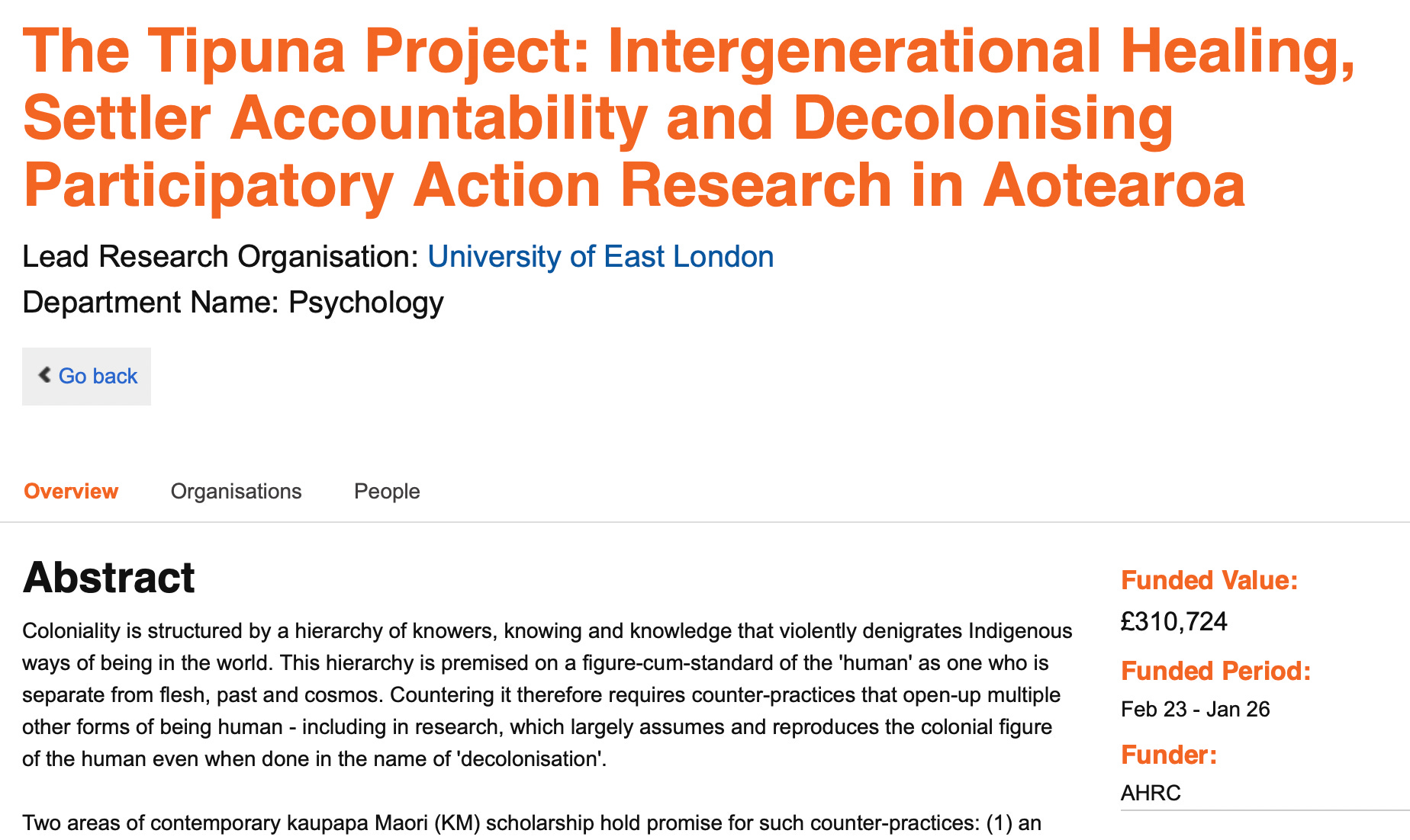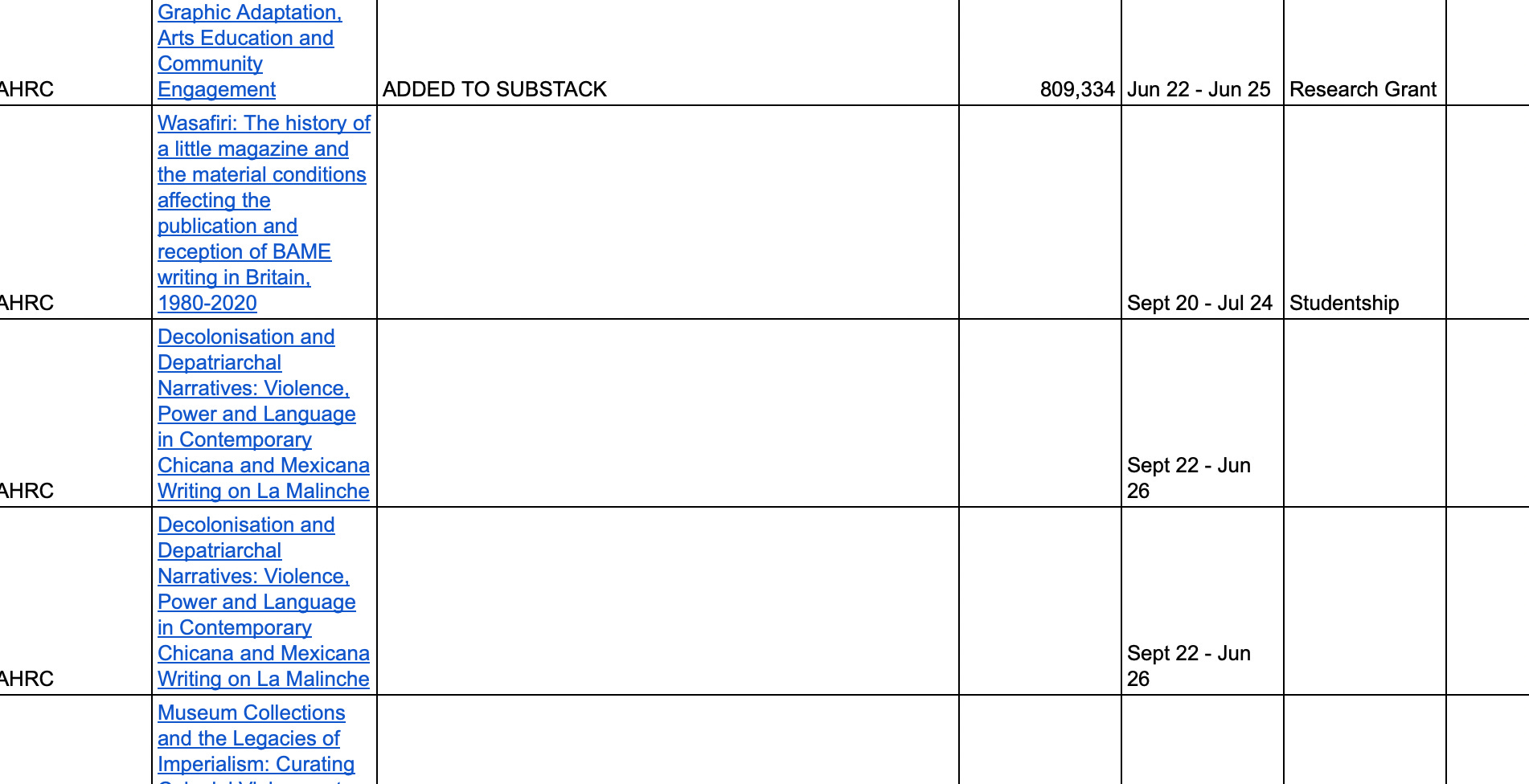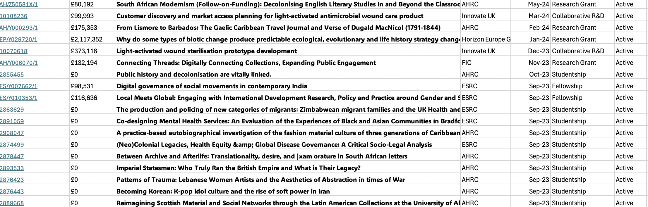 During my trawls of UKRI funding grants, I’ve noticed that the word “decolonise”/ “decolonising” comes up A LOT. Search for “decolonise” and 997 projects are found, 366 are “active” - in other words, going on right now. A caveat: not every one of these results is about “decolonise” in the “British Colonial Rule” sense. For instance this one: