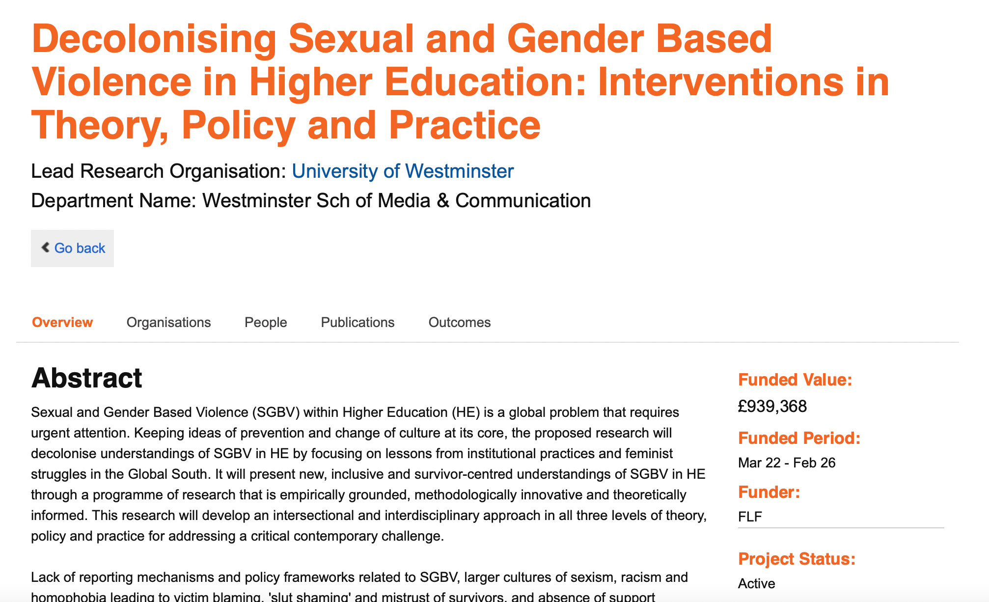 “Sexual and Gender Based Violence (SGBV) within Higher Education (HE) is a global problem that requires urgent attention. Keeping ideas of prevention and change of culture at its core, the proposed research will decolonise understandings of SGBV in HE by focusing on lessons from institutional practices and feminist struggles in the Global South.”