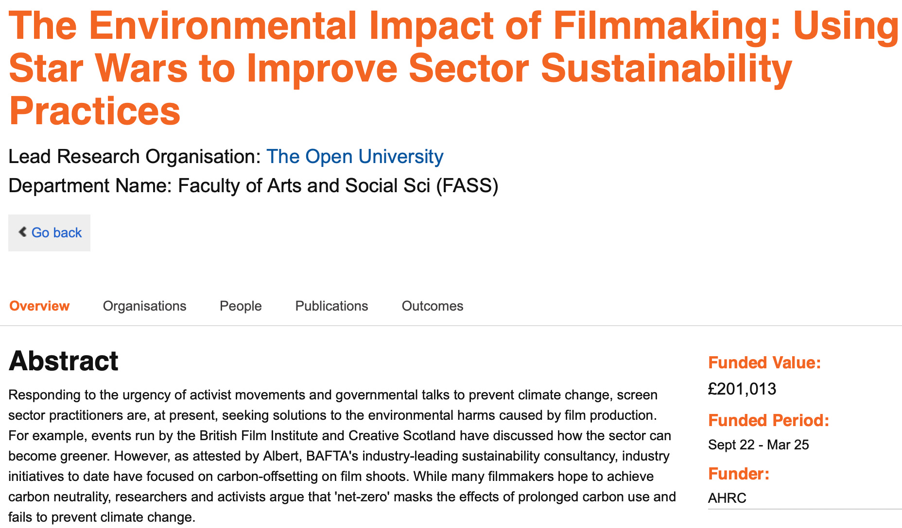 The Environmental Impact of Filmmaking: Using Star Wars to Improve Sector Sustainability Practices - The Open University