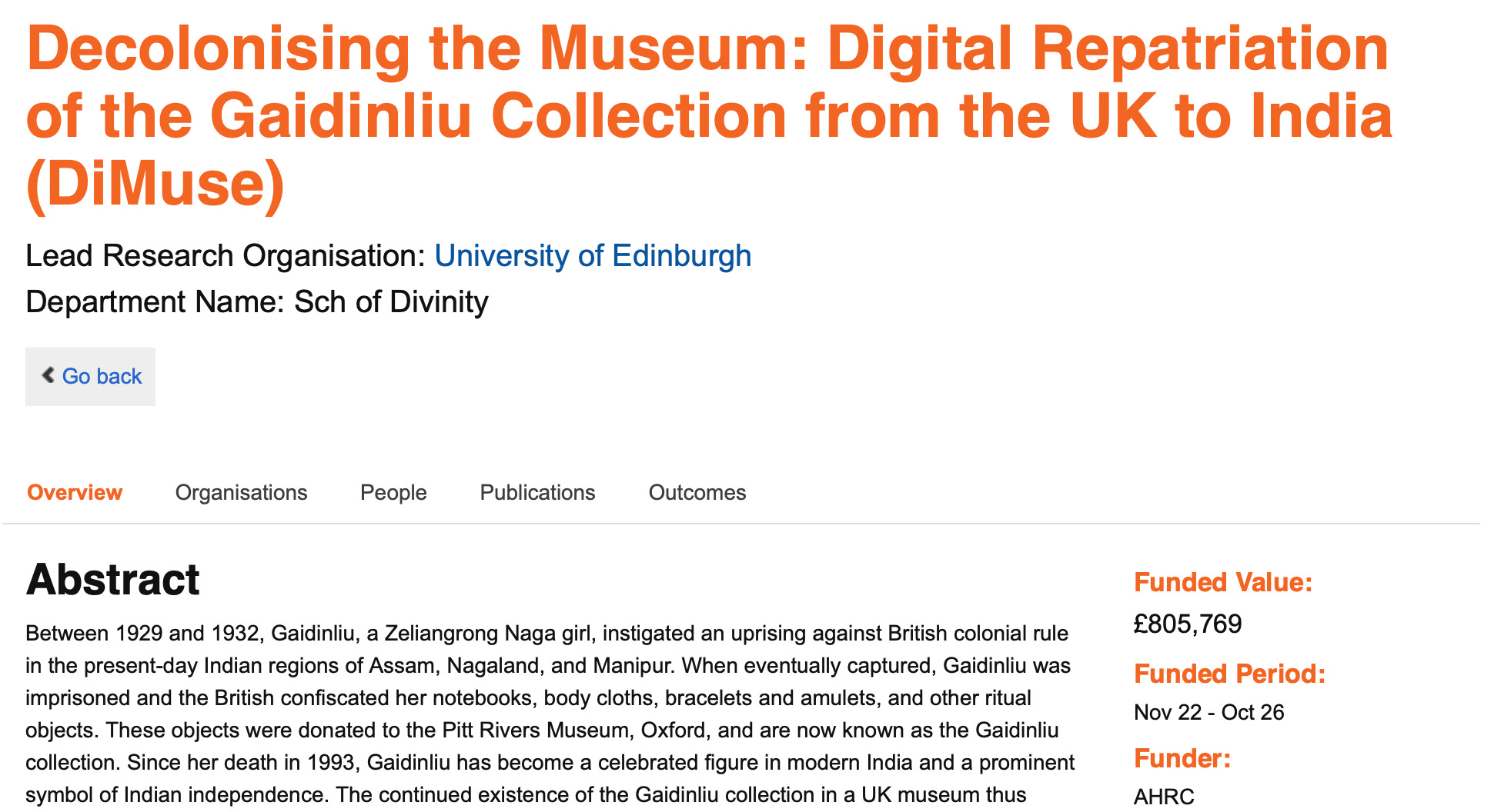 Decolonising the Museum: Digital Repatriation of the Gaidinliu Collection from the UK to India (DiMuse) - University of Edinburgh