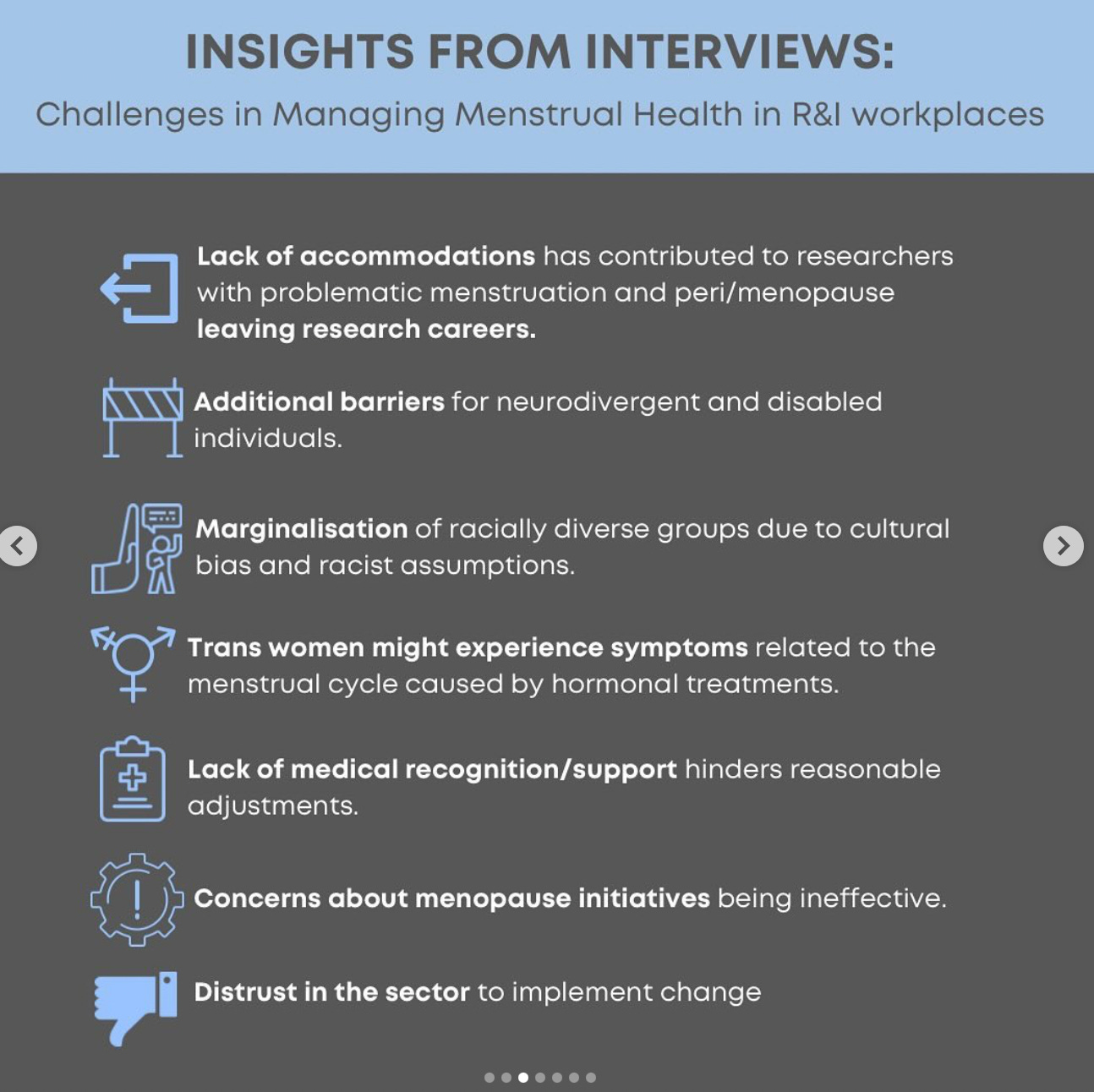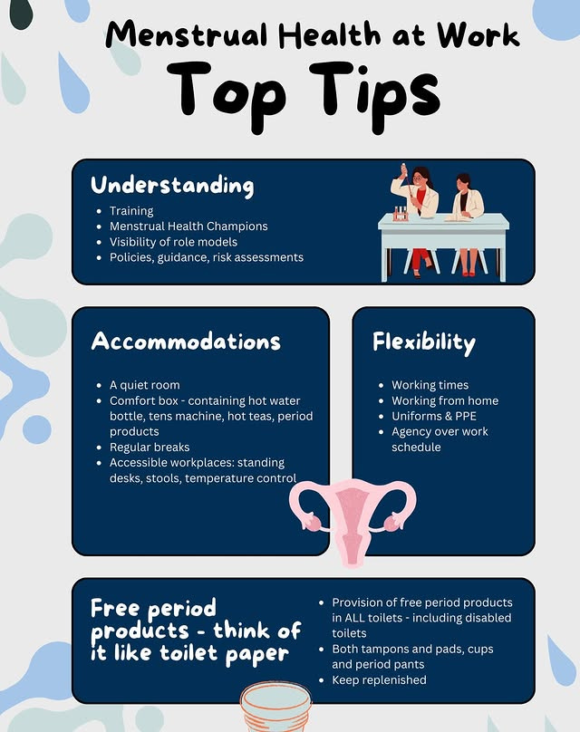 EDICa devotes a huge amount of time and resources to periods - specifically trying to educate R&I (Research and Innovation) workplaces on how to be supportive here: