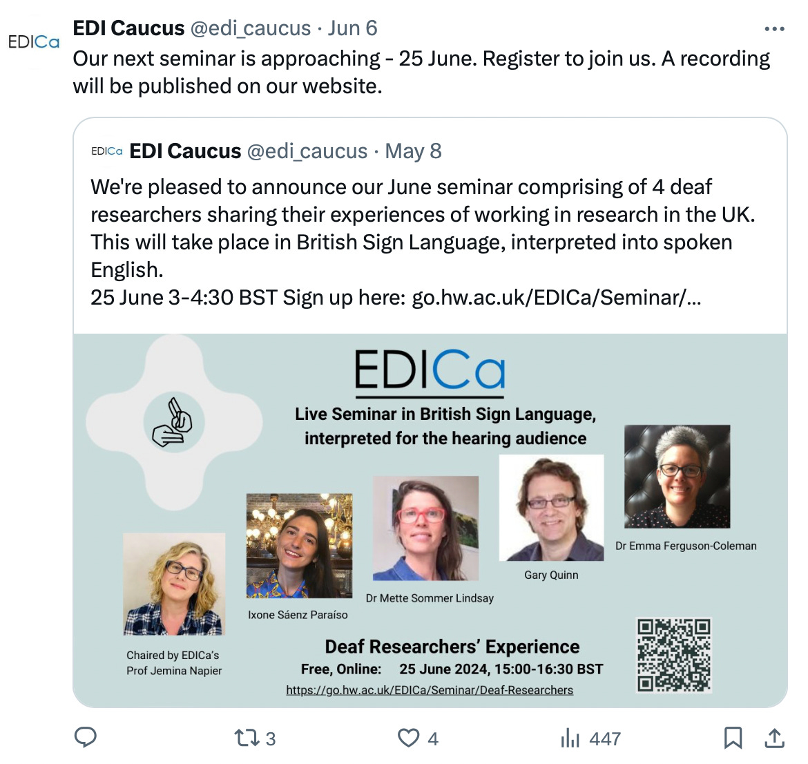 Before I get into the nitty gritty of why the EDICa counts as woke waste, I should add that it does have some sensible elements to it. I am not, for instance, disparaging its work with deaf researchers, nor staff such as Professor Jemima Napier, EDICa’s Deputy Principal Investigator, who is an expert on sign languages, linguistic access, interpreting and translation. These are the sort of things actually needed, in terms of inclusivity initiatives - and paradoxically neglected by a lot of EDI zealots.