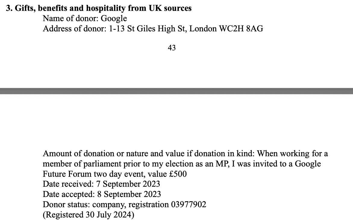 as well as other strange things - Google inviting Olivia Bailey MP to one of its events: