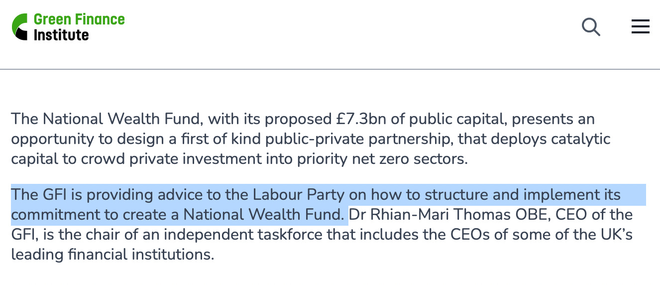 The GFI has a brief report for the Labour Party on its website, if you want to get a sense of the “advice”. Quelle surprise, it sounds exactly how you’d expect something drafted by a finance company (but a very lovely one - because it’s green, of course).