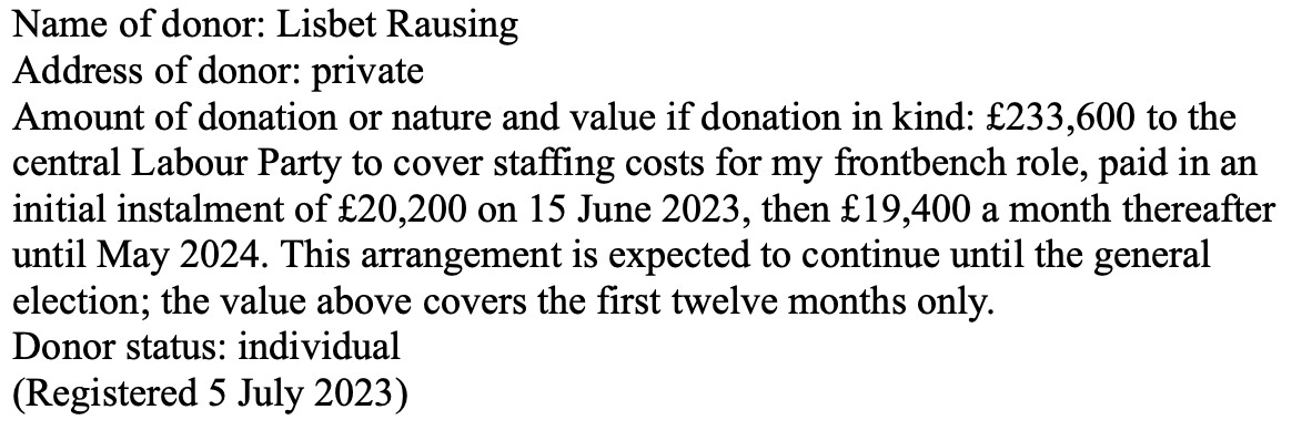 Second was the £233,600 Miliband received from Lisbet Rausing “to cover staffing costs for my frontbench role”: