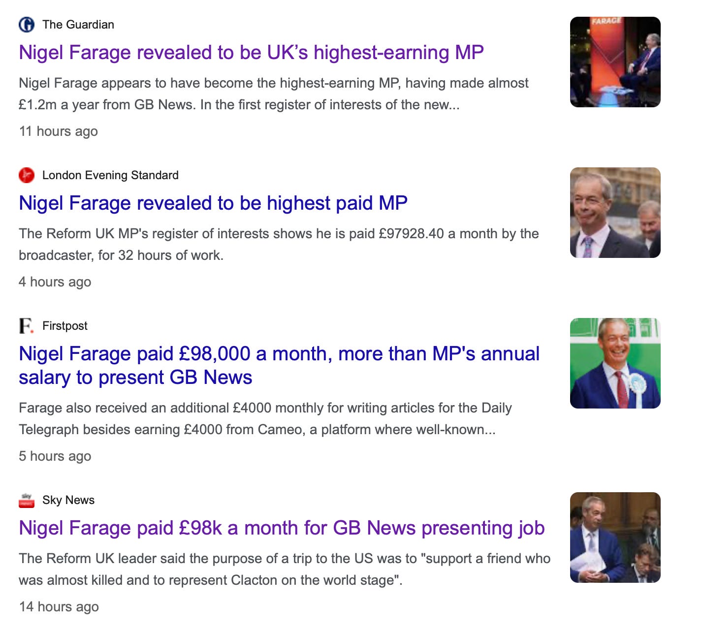 Earlier I searched Google for “MP register of interests” (in the last 24 hours) and unsurprisingly it was Farage, Farage and more Farage…
