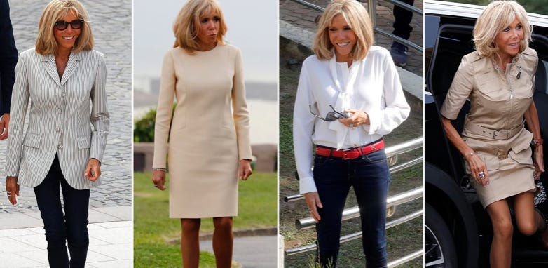 One article suggests Brigitte Macron spent up to £11,000 in designer outfits to welcome G7 wives to Biarritz in 2019, strongly indicating that she is a woman.