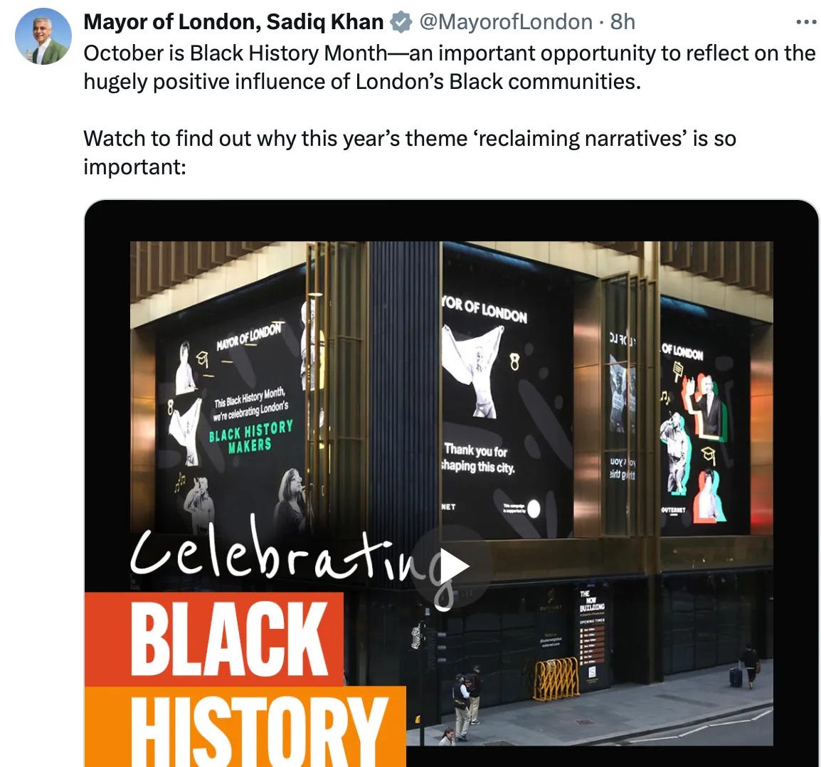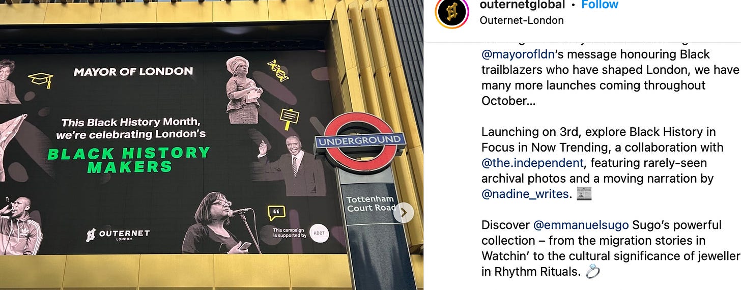 … and more recently Sadiq Khan used the Outernet to promote Black History Month: