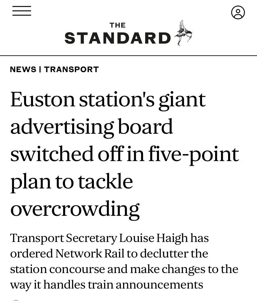 Then there was the fact that, last week Louise Haigh made a big song and dance about Euston Station’s advertising board being switched off.