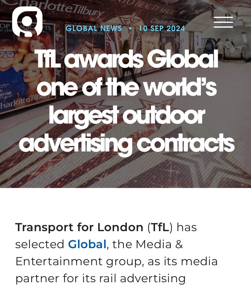 Perhaps you know all this already. But I bet you don’t know that Global is a huge player in the outdoor advertising space, in September winning a massive contract with TfL: