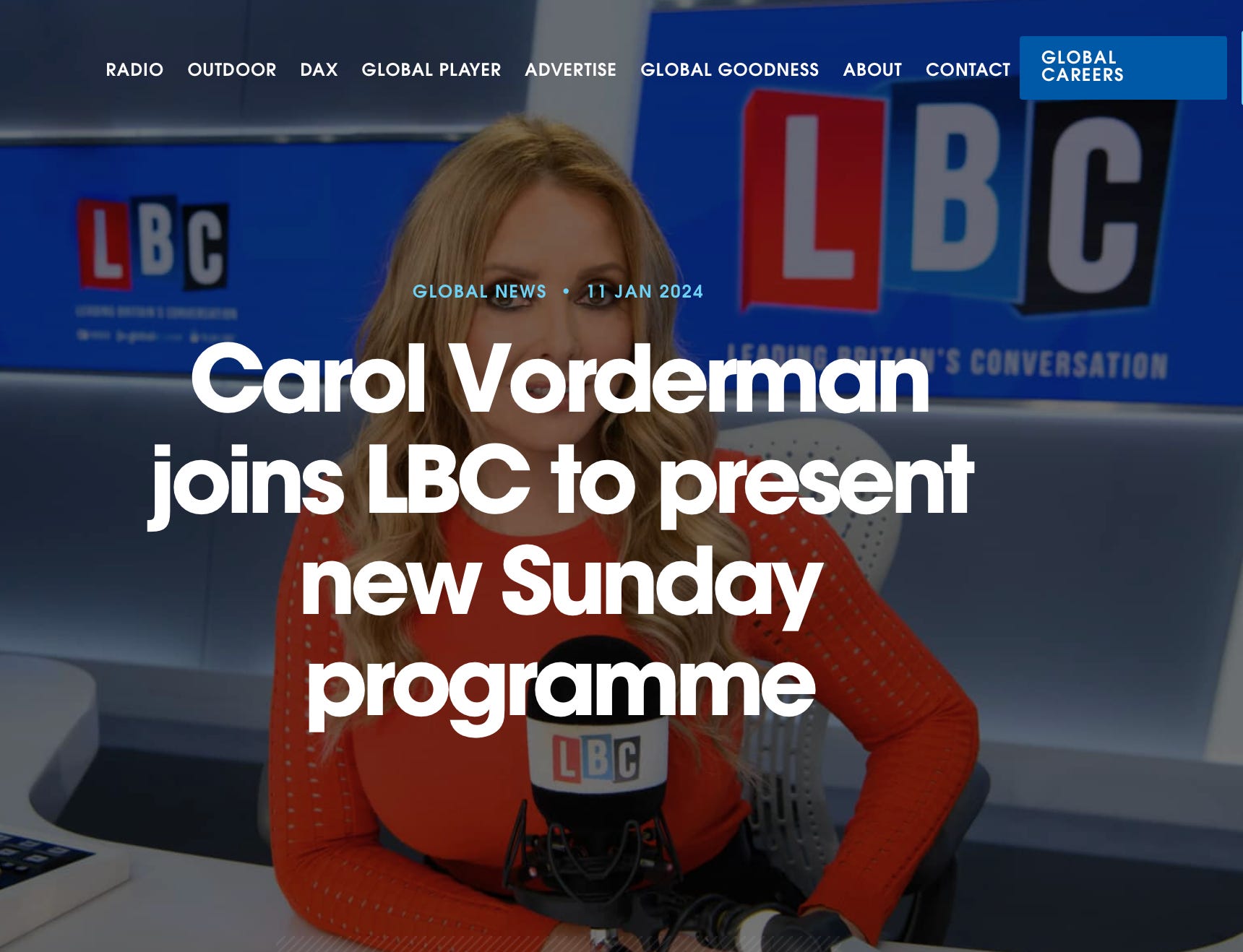 Global is partly responsible for turning Carol Vorderman into a political star: