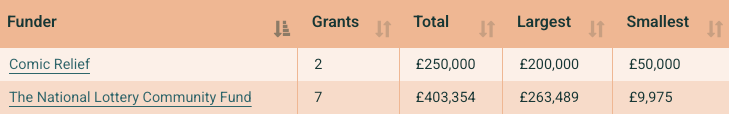 According to 360 Giving Data, it has £653,354 in funding from Comic Relief and The National Lottery Community Fund: