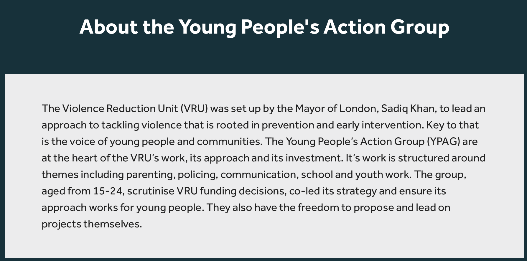 Embedded in The Globe’s website are videos by the Young People’s Action Group (YPAG) - which advises the Mayor of London's Violence Reduction Unit (VRU).