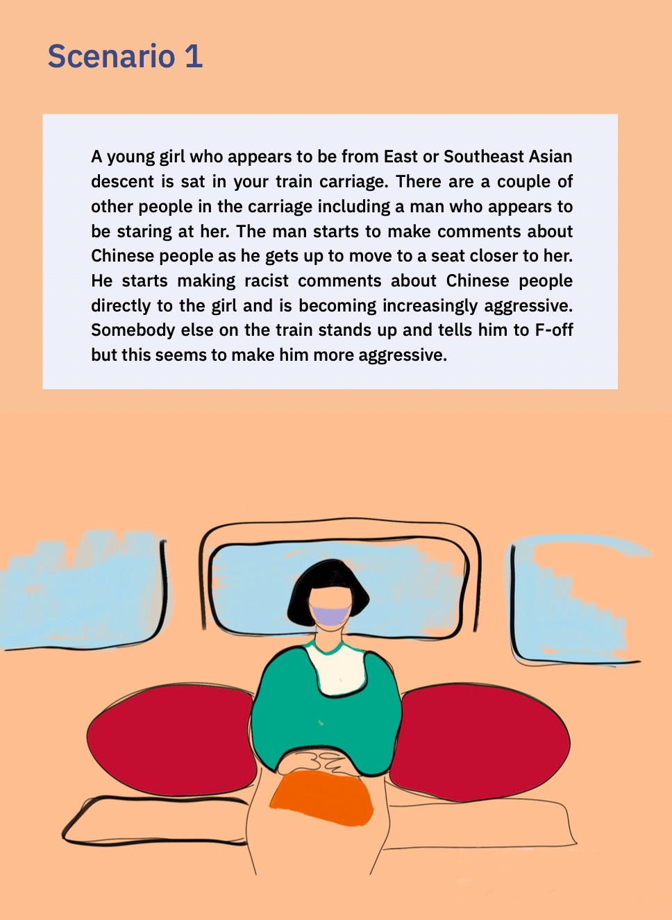 Next we were given scenarios to consider in groups. Mine had to discuss the case of a “young girl who appears to be from East or Southeast Asian descent”, and had been subjected to racist comments on the tube. We mulled over the right thing to do as an “active bystander”, but soon more questions came up. What if the young girl didn’t speak English? Or was deaf? There was also discussion on Donald Trump, and how his comments on Chinese people might lead to such crimes.