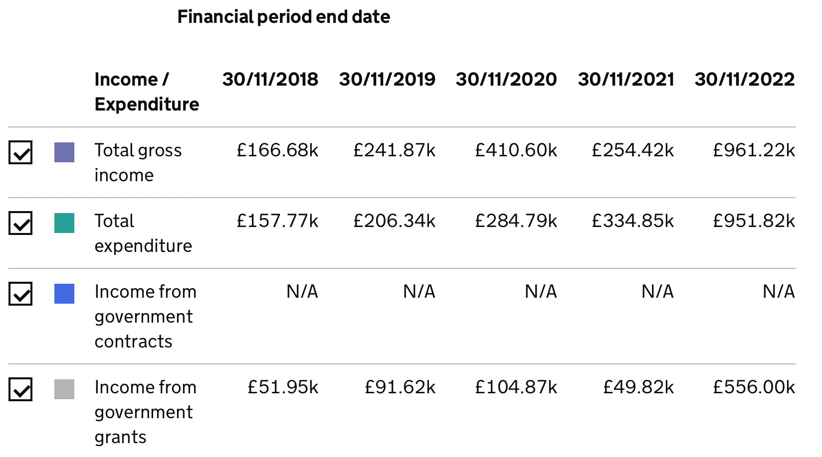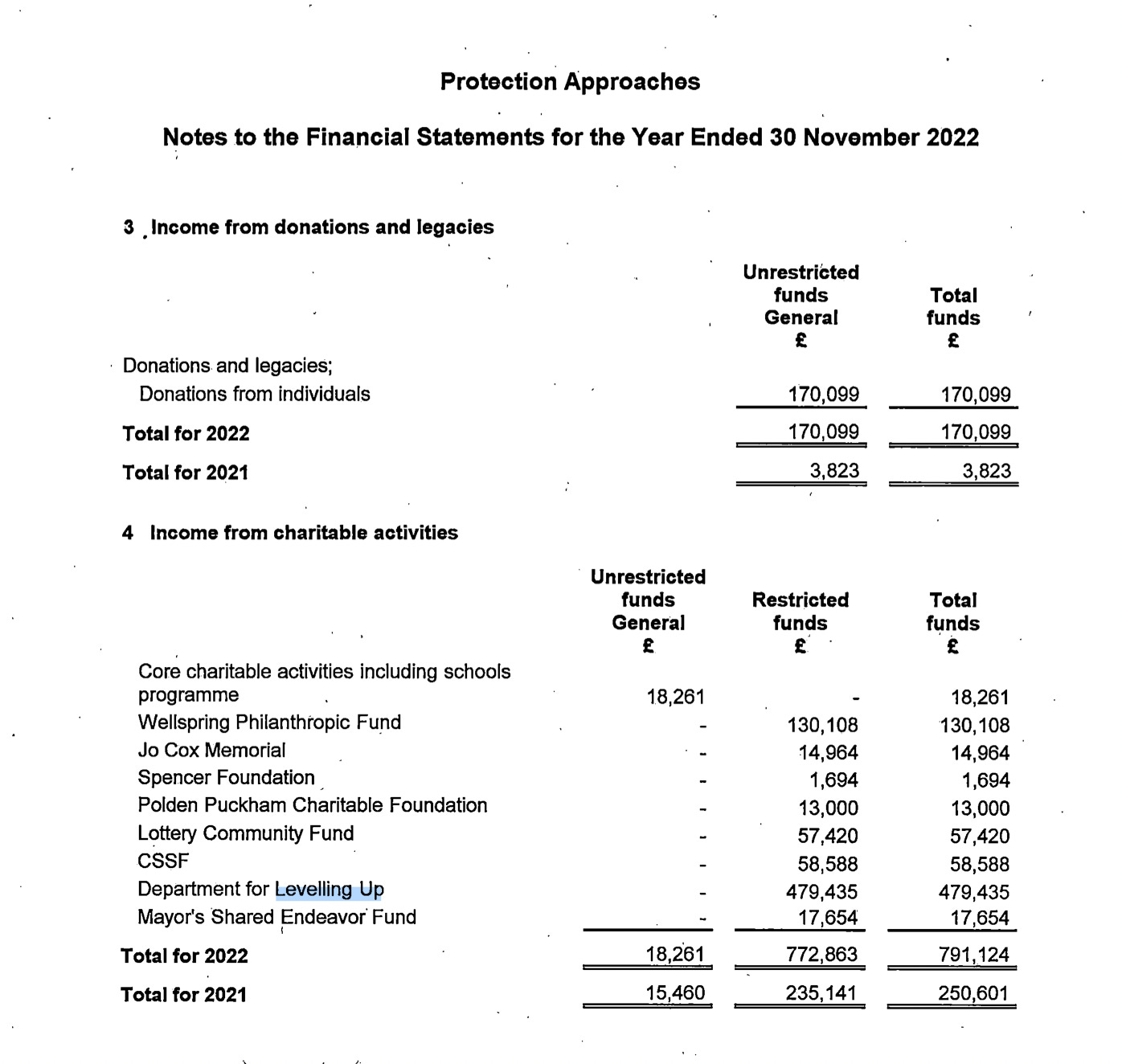 Closing the session, one of the course leaders made clear his thanks to TfL for its funding of the training. It’s no wonder charities like Protection Approaches are grateful to London transport services. Although these courses are marketed as “free”, the reality is that companies are receiving a huge amount of government funding. In the year up until 30 November 2022, Protection Approaches received hundreds of thousands from the Department for Levelling Up (see below) and £18,000 from the Mayor’s Shared Endeavour. Its funding from government grants has vastly shot up since 2018, from £51,000 to £556,000.