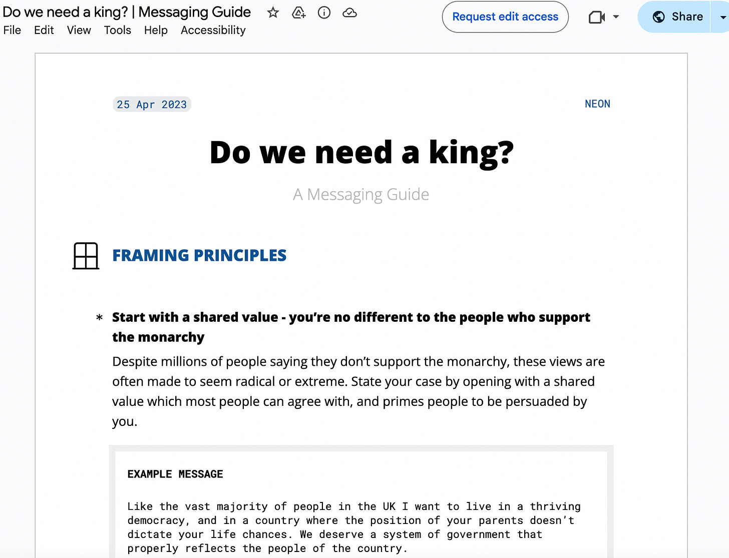 NEON also has a load of “messaging guidance” on its website for anyone needing to swot up on wealth taxes/ ULEZ/ asylum/ whatever the next progressive cause is!