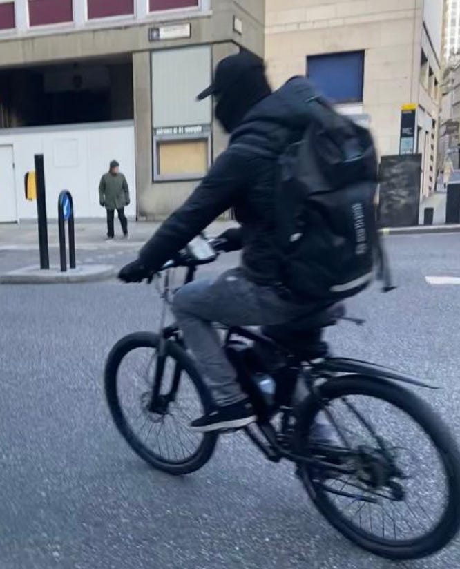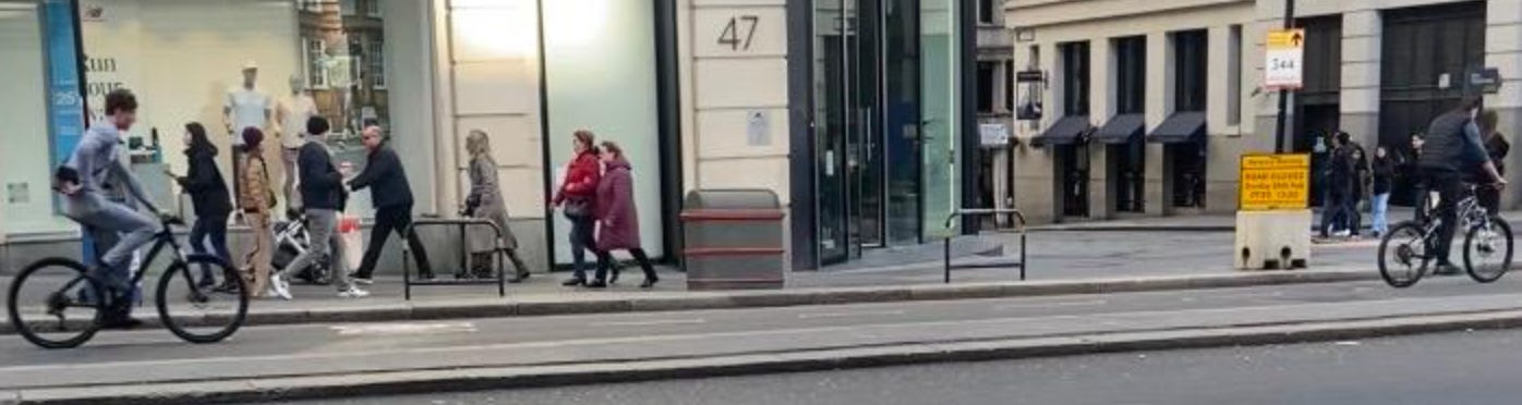Psy-clists on the pavement are a major problem on my commute to work. When I have taken footage to be sent to the police, I receive a lot of commentary similar to the below. The pavement needs to be safe for everyone and made free from psy-clists.