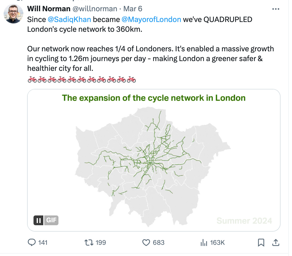 He constantly tells us he’s “making London a greener safer & healthier city for all.”
