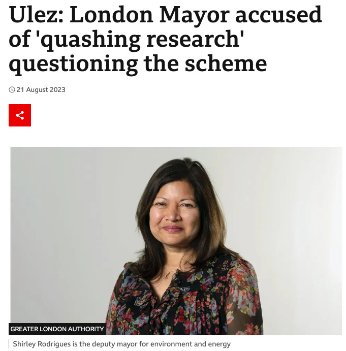 There’s also Shirley Rodrigues, previously London’s Deputy Mayor for Environment - who’s famous for “‘colluding to quash research’ on the Ultra Low Emission Zone (Ulez)” (and now sits on the board of C40 Cities).