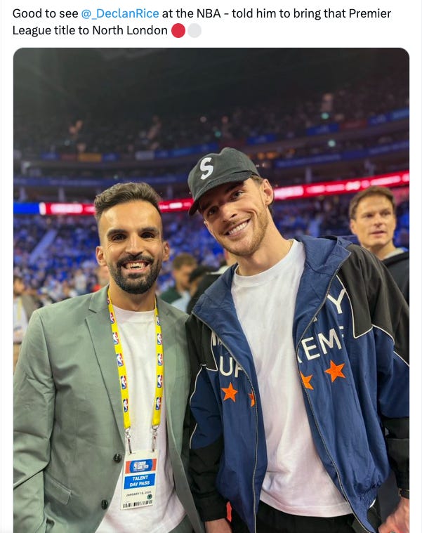 Yesterday Mete Coban MBE, London’s £151,465 per year Deputy Mayor for Environment and Energy, posted about his meeting with Arsenal’s Declan Rice. They were both attending the NBA in London.