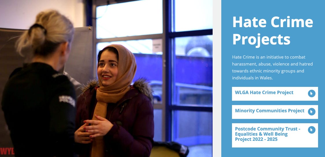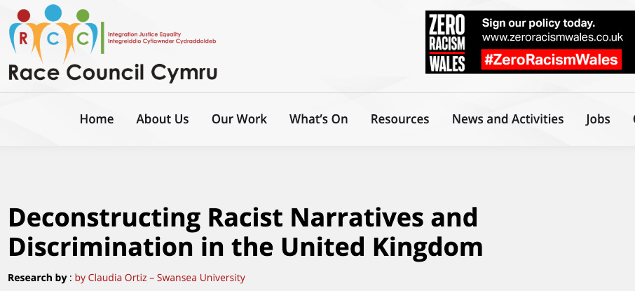 Race Council Cymru says it’s “Building an anti-racist Wales through community action, education, and systemic change since 2010.” Its initiatives include “the Race Charter Mark in Wales, an annual benchmarking exercise that will rank and publicise the best employers for Black Asian and Minority Ethnic people in Wales” and Hate Crime Projects:
