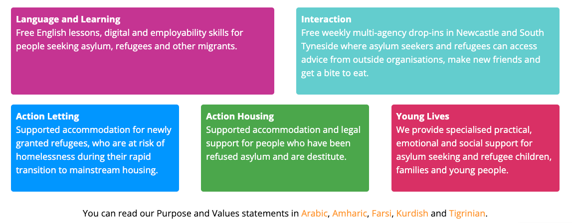 Action Foundation “is an award-winning charity based in Newcastle upon Tyne providing support to disadvantaged refugees, asylum seekers and other migrants across the North East.”