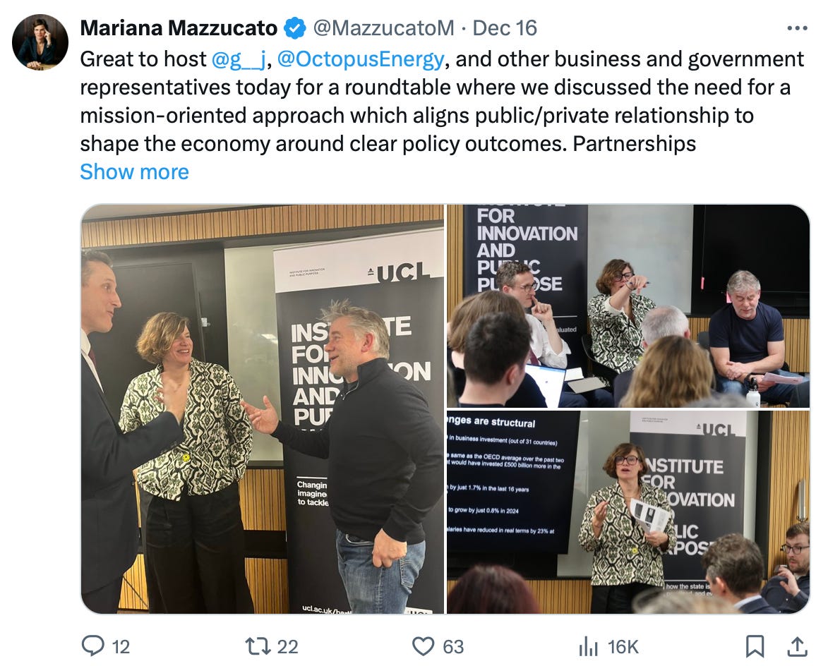 Interestingly the CEO of Octopus is no stranger to Professor Mazzucato: