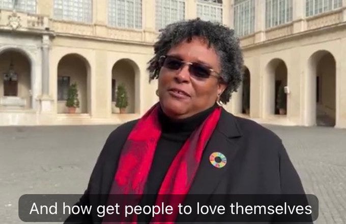 One person who’s very excited about all this “humanity” is Mia Amor Mottley, the Prime Minister of Barbados, who appeared in the video, alongside Mazzucato.