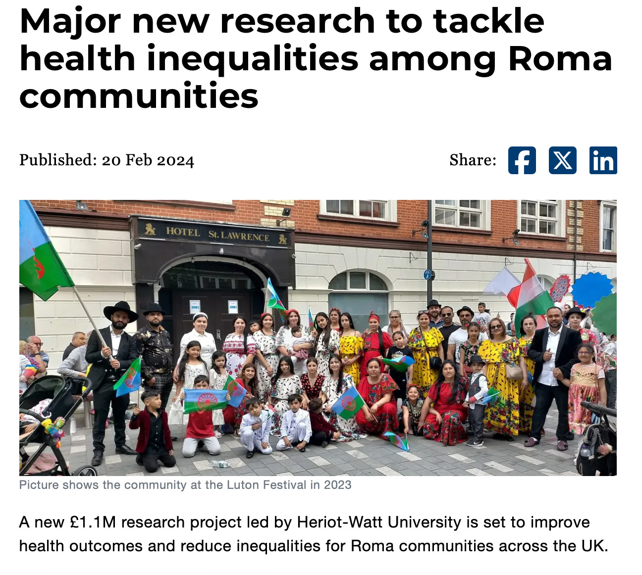 The project aims to identify how community assets can support healthy ageing for Roma communities, aimed at reducing health inequities in middle to later life (from 40 onwards). To this end the project will involve Roma communities in the localities of Glasgow, Luton and Peterborough. It will use mediums such as storytelling and art to understand how health inequities are experienced, developing new ways to connect the physical, social and cultural assets, which can support healthy ageing.
