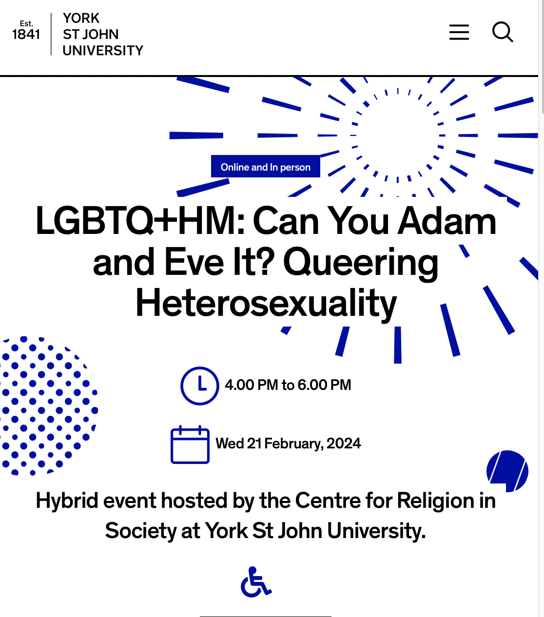 Event: LGBTQ+HM: Can You Adam and Eve It? Queering Heterosexuality, the Centre for Religion in Society at York St John University