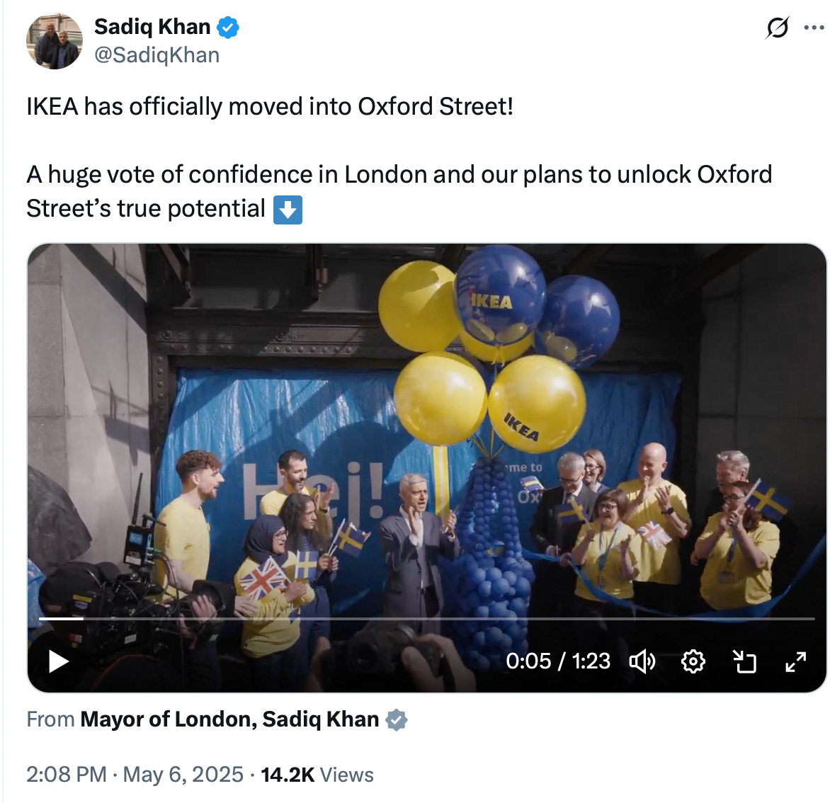 Playback speed×Share postShare post at current timeShare from 0:000:00/0:00Transcript6124Sadiq Khan, IKEA and C40 CitiesWhy is the Mayor of London so excited about a new IKEA store on Oxford Street?Charlotte GillMay 06, 20256124ShareTranscriptHere’s the clip I discuss in the video:And the C40 press release discussed:More:Why have so few heard of C40 Cities?Charlotte Gill·December 14, 2024Read full story"Who Funds You?"💳👁️| C40 CitiesCharlotte Gill·June 1, 2024Read full storyDiscussion about this videoCommentsRestacksCharlotte GillSubscribeAuthorsCharlotte GillRecent PostsDiane Abbott calls for reparationsOct 19 • Charlotte GillWhy were taxpayers charged £1.4 million for a charity that explicitly believes in open borders?Sep 22 • Charlotte GillWhy did Bell Ribeiro-Addy - who wants to be Labour Deputy Leader - block me on X? Sep 10 • Charlotte GillZoe Gardner's "Stop Trump" campaign and its links to Pelican House (Corbynista HQ)Sep 7 • Charlotte GillThe Labour MP who went to Soros-funded training school Sep 3 • Charlotte GillThe UK must reject “Sanctuary Cities” 🇬🇧 🇺🇸 🛑Aug 13 • Charlotte GillThe charity that helps Labour win electionsJul 11 • Charlotte GillDoes BBC Question Time have plants?May 20 • Charlotte Gill
