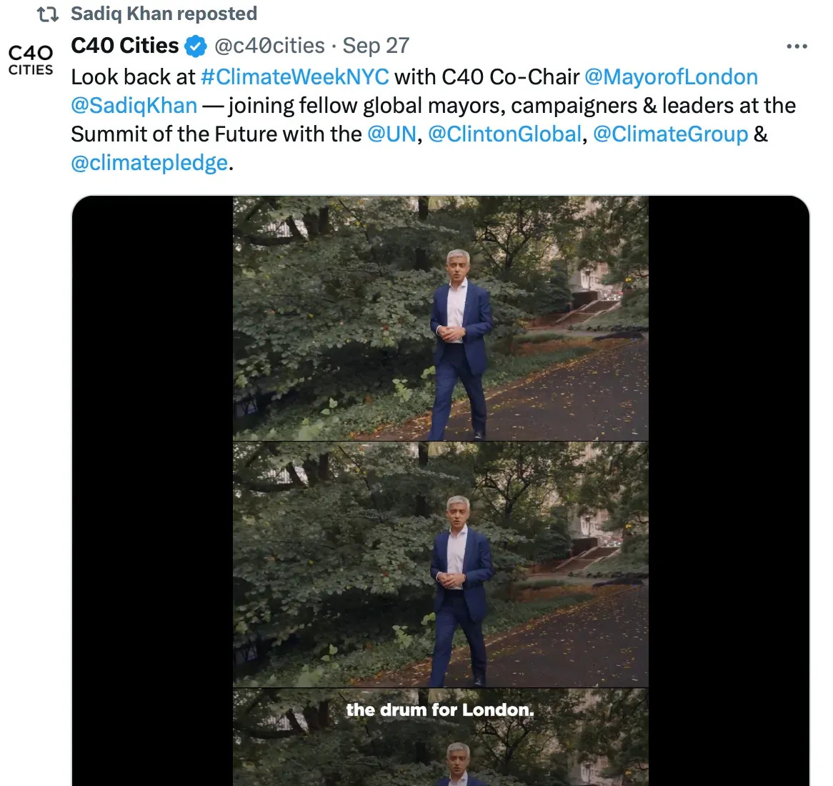 I used to think everything going wrong in London was due to Khan being incompetent, but now believe it can be explained by his role as co-Chair of C40 Cities (“a global network of mayors taking urgent climate action”), as well as his relationships with: