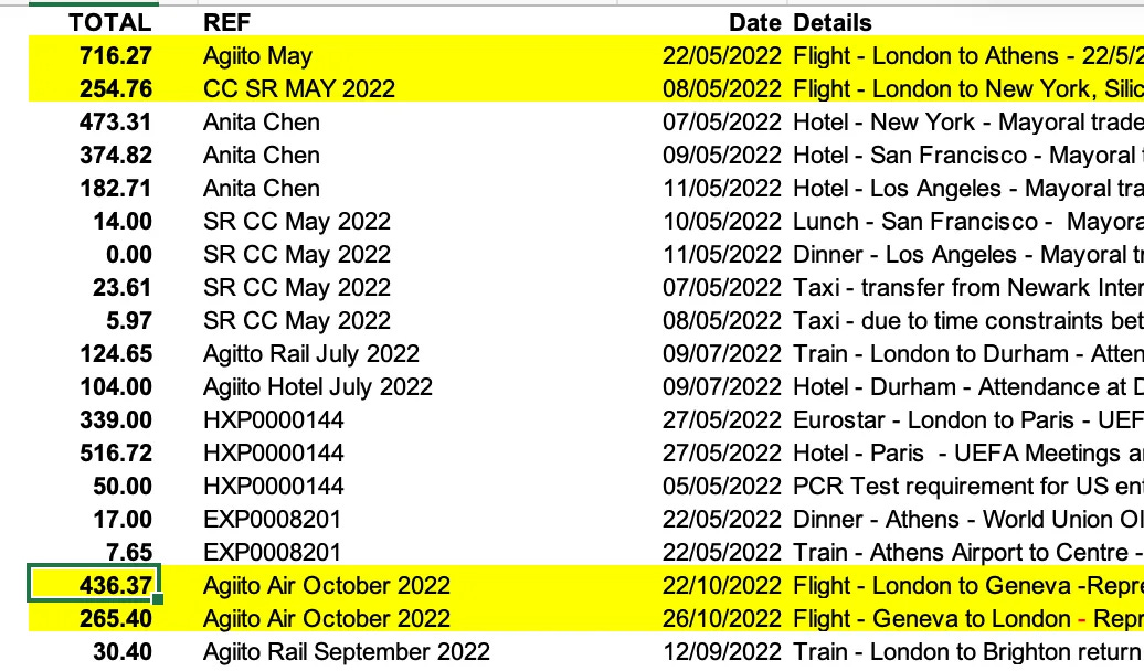 While working for Khan, she has taken various flights (invoicing taxpayers, of course). Here’s her flight bill for 2022-23: