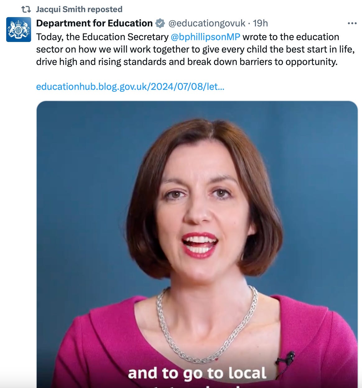 To kick off with, some thoughts on education. This week the new Education Secretary, Bridget Phillipson, gave a few hints of what’s on the agenda.