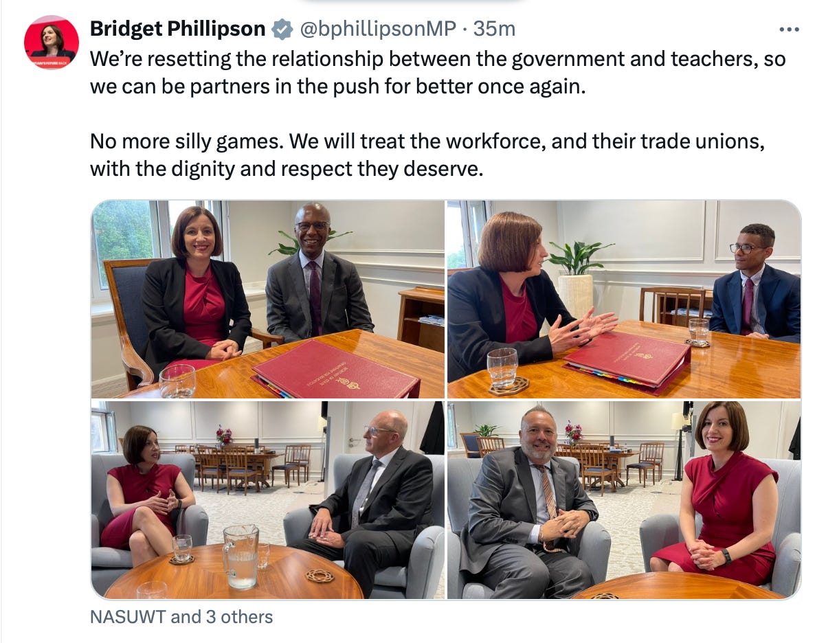 Yesterday Phillipson continued on her charm offensive, tweeting: “No more silly games. We will treat the workforce, and their trade unions, with the dignity and respect they deserve.”