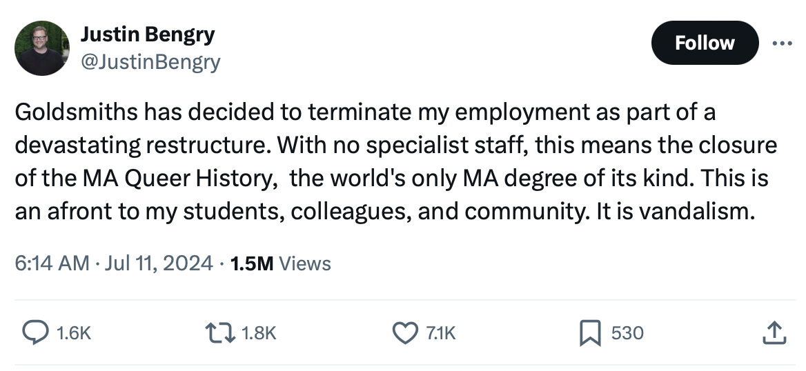 Very true - as anyone following the job cuts at Goldsmiths will know: